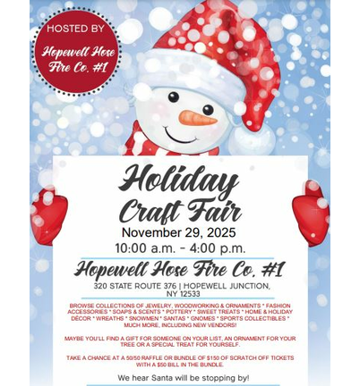 The Holiday Craft & Vendor Fair is hosted by The Hopewell Hose Fire Company #1 Volunteer Officers and Members
