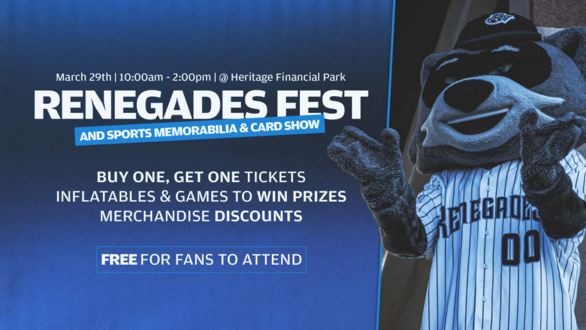 This year's Renegades Fest will be bigger than ever, marking the official countdown to Opening Night on Friday, April 4. The event promises fun for the whole family, including a tour of the new Renegades Home Clubhouse, games with chances to win Renegades prizes, mascot autograph sessions, a Touch-a-Truck experience, inflatables at the Heritage Financial Credit Union Fun Zone, on-field activities, a Sports Memorabilia & Card Show, and an exclusive in-person only buy one, get one free single game ticket deal (with a limit of 10 tickets).