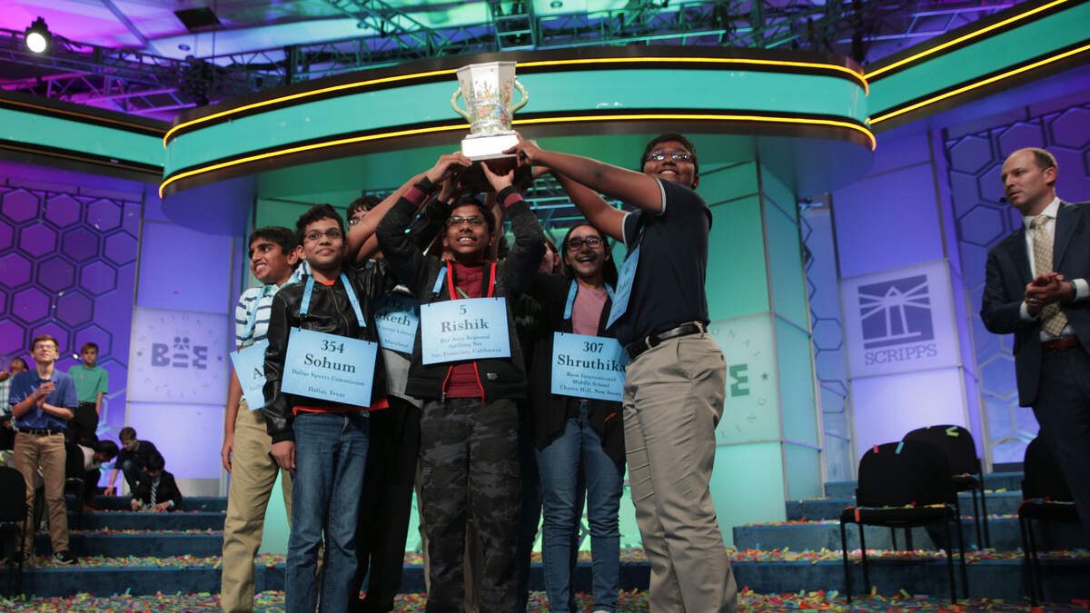 Dr. Jacques Bailly said they "threw the dictionary” at those eight children, and the champions “showed the dictionary who was boss.” The kids: Rishik Gandhasri, Erin Howard, Saketh Sundar, Shruthika Padhy, Sohum Sukhatankar, Abhijay Kodali, Christopher Serrao and Rohan Raja spelled the final 47 words correctly in all.